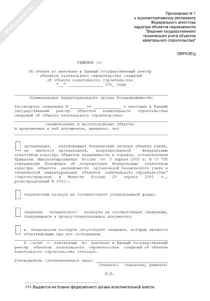 - 494Решение об отказе во внесении в Единый государственный реестр объектов капитального строительства сведений об объекте капитального строительства