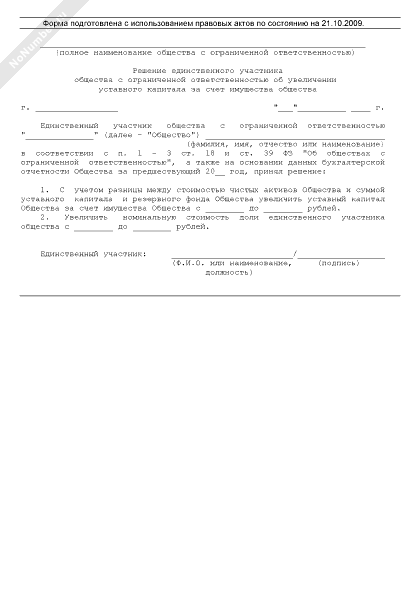 - 83Решение единственного участника общества с ограниченной ответственностью об увеличении уставного капитала за счет имущества общества