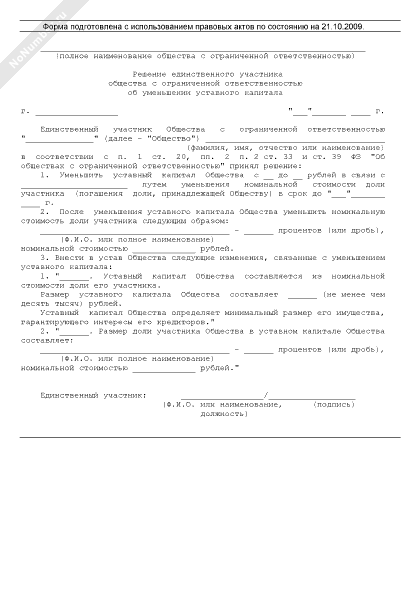 - 86Решение единственного участника общества с ограниченной ответственностью об уменьшении уставного капитала