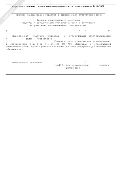 - 92Решение единственного участника общества с ограниченной ответственностью о возложении на участника дополнительных обязанностей