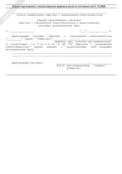 - 97Решение единственного участника общества с ограниченной ответственностью о предоставлении участнику дополнительных прав