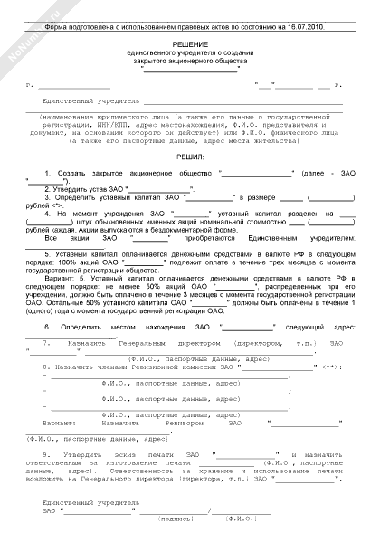 - 81Решение единственного учредителя о создании закрытого акционерного общества