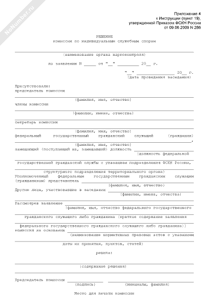Решение комиссии по индивидуальным служебным спорам в Федеральной службе Российской Федерации по контролю за оборотом наркотиков (рекомендуемый образец заполнения)