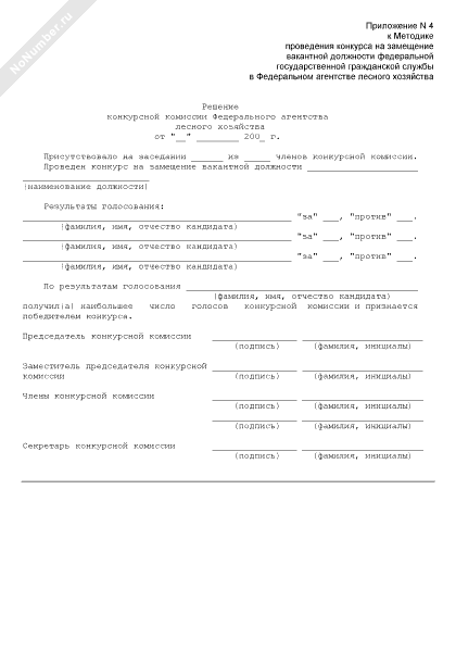 Решение конкурсной комиссии Федерального агентства лесного хозяйства по итогам проведения конкурса на замещение вакантной должности федеральной государственной гражданской службы в Федеральном агентстве лесного хозяйства (рекомендуемый образец заполнения)