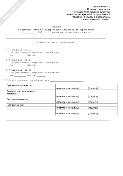Решение конкурсной комиссии Федерального агентства по образованию о замещении вакантной должности (рекомендуемый образец заполнения)