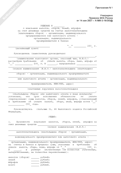 - Источник– Приказ ФНС РФ от 14.05.2007 № ММ-3-19/293@