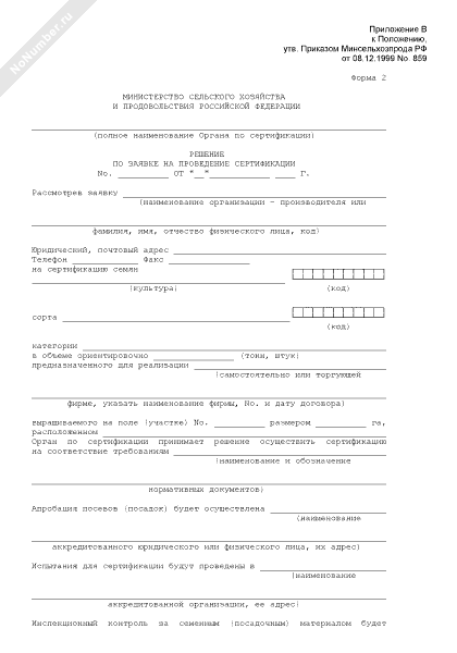 - Источник– Приказ Минсельхозпрода РФ от 08.12.1999 № 859