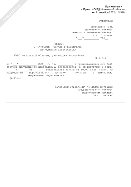 Решение о признании (отказе в признании) вынужденным переселенцем