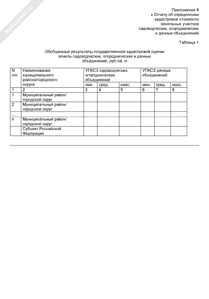 Обобщенные результаты государственной кадастровой оценки земель садоводческих, огороднических и дачных объединений (рекомендуемый образец заполнения)
