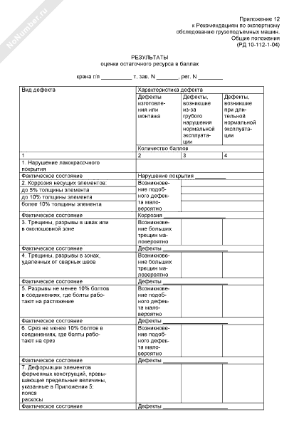 Результаты оценки остаточного ресурса грузоподъемной машины в баллах