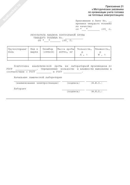 Результаты анализа контрольной пробы твердого топлива на тепловых электростанциях (приложение к акту приемки твердого топлива по качеству)