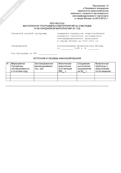 Результаты выполнения программных мероприятий повышения надежности энергоснабжения наземного городского пассажирского электрифицированного транспорта в городе Москве на 2010-2012 гг. за 9 месяцев и об ожидаемом выполнении за год (рекомендуемый образец заполнения)