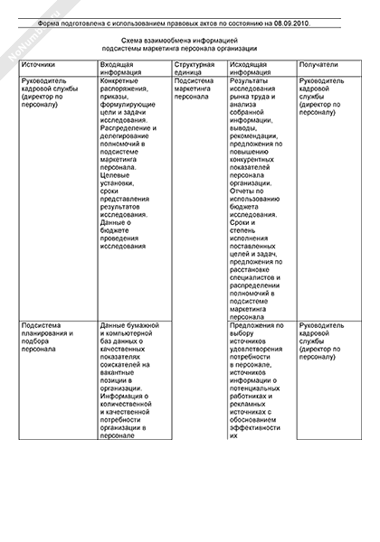 Схема взаимообмена информацией подсистемы маркетинга персонала организации