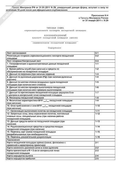 Типовая схема аэронавигационного паспорта посадочной площадки (АНППП)