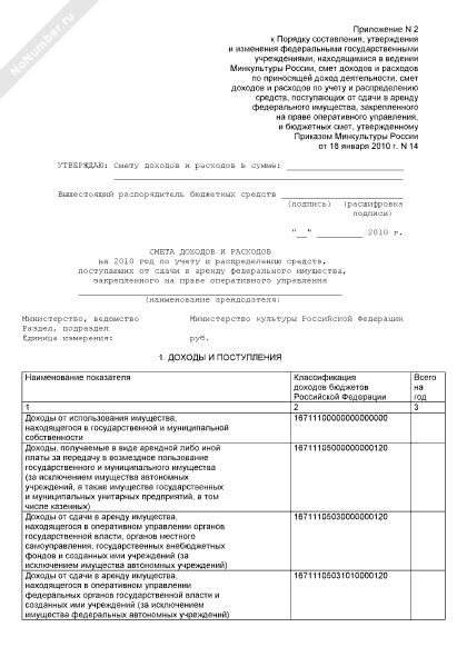 - 88Смета доходов и расходов на 2010 год по учету и распределению средств, поступающих от сдачи в аренду федерального имущества, закрепленного на праве оперативного управления за учреждениями, находящимися в ведении Минкультуры России