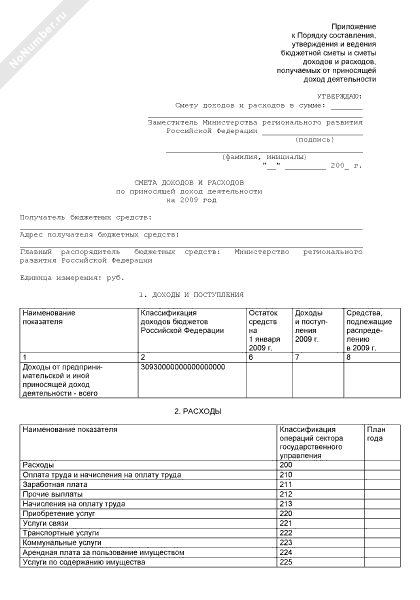 - 98Смета доходов и расходов по приносящей доход деятельности федерального государственного учреждения, находящегося в ведении Министерства регионального развития Российской Федерации, на 2009 год