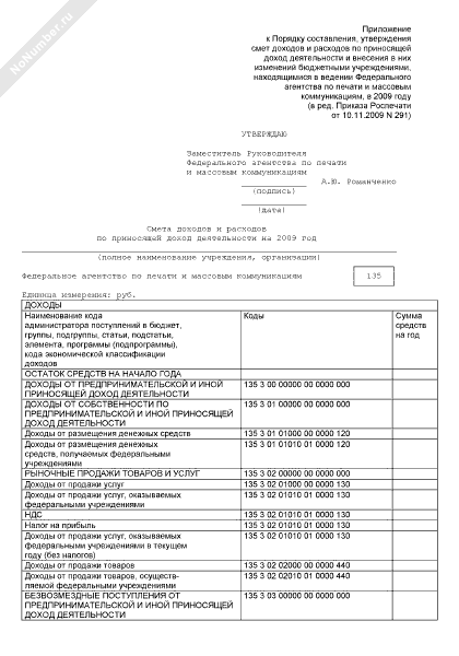 - 99Смета доходов и расходов по приносящей доход деятельности бюджетного учреждения, находящегося в ведении Федерального агентства по печати и массовым коммуникациям, в 2009 году