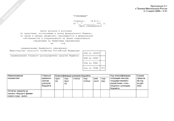 - 96Смета доходов и расходов по средствам, поступающим в доход федерального бюджета от сдачи в аренду имущества, находящегося в федеральной собственности и закрепленного на праве оперативного управления за бюджетным учреждением