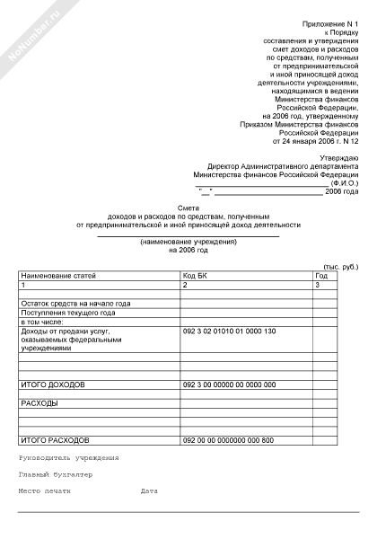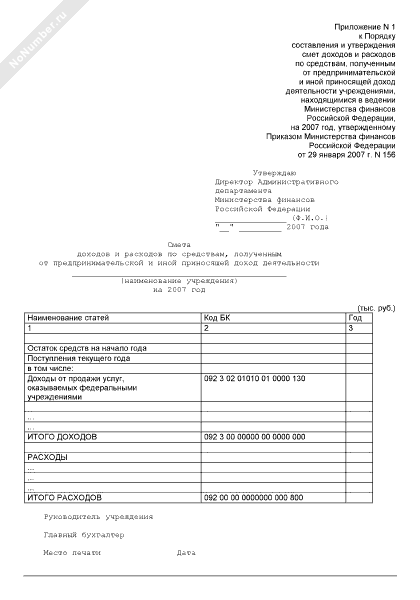 - 92Смета доходов и расходов федерального учреждения по средствам, полученным от предпринимательской и иной, приносящей доход деятельности