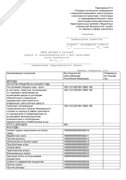 - 86Смета доходов и расходов средств от предпринимательской и иной приносящей доход деятельности территориальных органов Федеральной службы по надзору в сфере транспорта на год