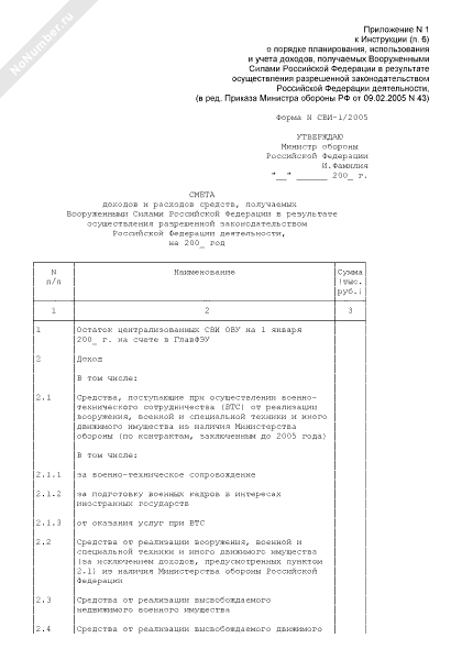 - 97Смета доходов и расходов средств, получаемых Вооруженными Силами Российской Федерации в результате осуществления разрешенной законодательством Российской Федерации деятельности. Форма № СВИ-1/2005