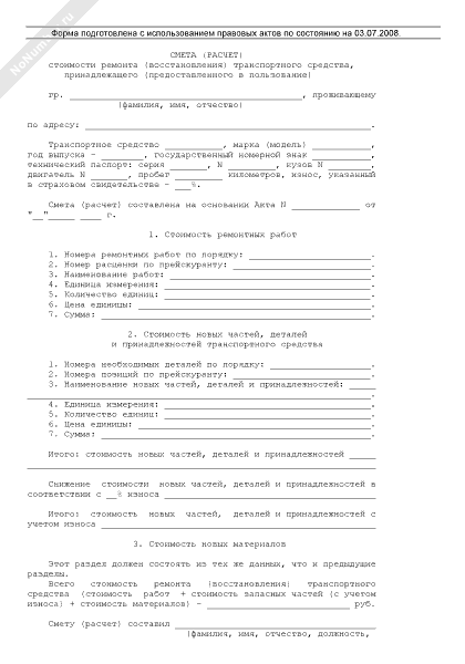 - 82Смета (расчет) стоимости ремонта (восстановления) транспортного средства