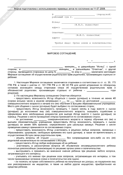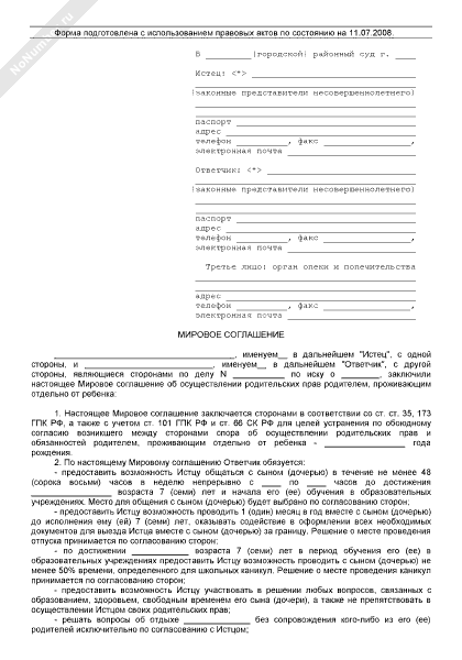 - 223Мировое соглашение об осуществлении родительских прав и обязанностей родителем-нерезидентом