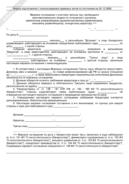 - 227Мировое соглашение с участием третьих лиц, являющихся заинтересованными лицами по отношению к должнику, временному управляющему (административному управляющему, внешнему управляющему), конкурсному кредитору