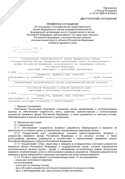 - 231Примерное двустороннее соглашение об отношениях и сотрудничестве территориального органа федерального органа государственной власти, федеральной организации, иного государственного органа Российской Федерации, расположенного на территории субъекта Российской Федерации, с уполномоченным органом исполнительной власти субъекта Российской Федерации в области архивного дела