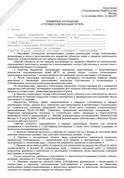 - 234Примерное соглашение о порядке компенсации потерь собственника телефонной сети, возникающих в связи с уничтожением его имущества (объектов связи) в процессе деятельности заказчика, осуществляемой за счет средств городского бюджета