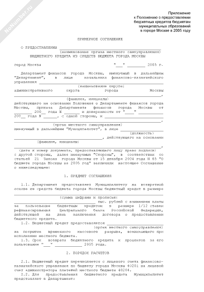- 236Примерное соглашение о предоставлении бюджетного кредита из средств бюджета города Москвы