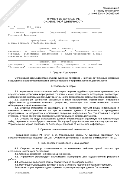 - 233Примерное соглашение о совместной деятельности службы судебных приставов и частных детективных, охранных предприятий и служб безопасности в целях повышения эффективности их деятельности