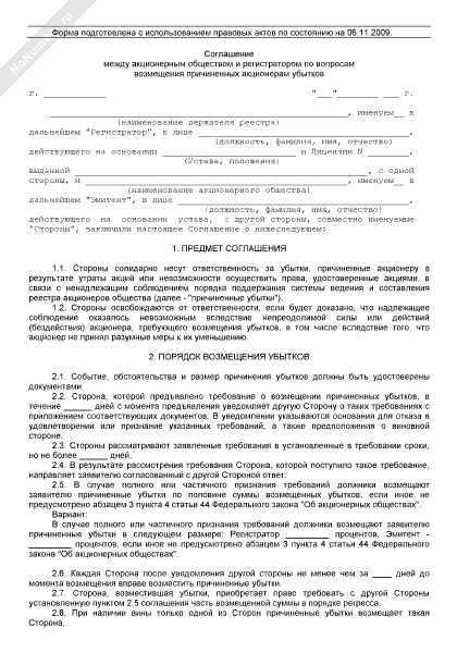 - 292Соглашение между акционерным обществом и регистратором по вопросам возмещения причиненных акционерам убытков