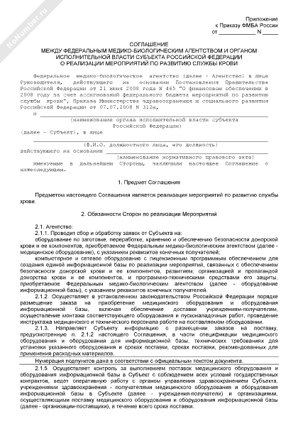 - 282Соглашение между Федеральным медико-биологическим агентством и органом исполнительной власти субъекта Российской Федерации о реализации мероприятий по развитию службы крови