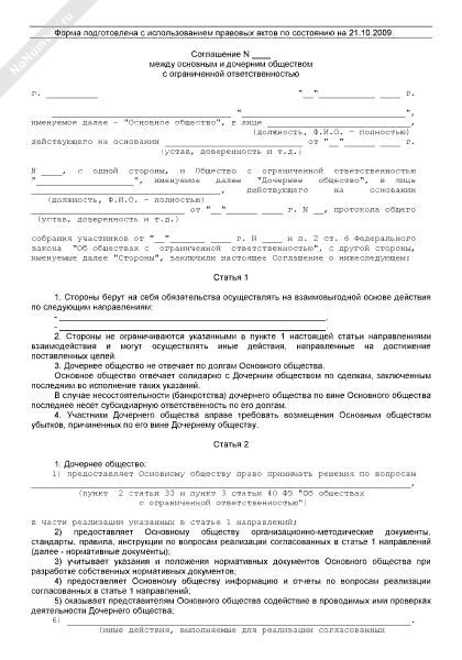 - 291Соглашение между основным и дочерним обществом с ограниченной ответственностью