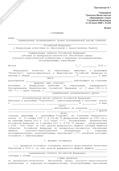 - 288Соглашение между уполномоченным органом исполнительной власти субъекта РФ и Федеральным агентством по образованию о предоставлении бюджету субсидии на материально-техническое обеспечение центра психолого-педагогической реабилитации и коррекции несовершеннолетних, злоупотребляющих наркотиками