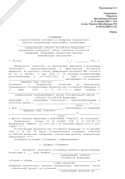 - 425Соглашение о предоставлении субсидии на внедрение комплексного проекта модернизации образования, заключаемое с победителем конкурсного отбора субъектов Российской Федерации, внедряющих комплексные проекты модернизации образования