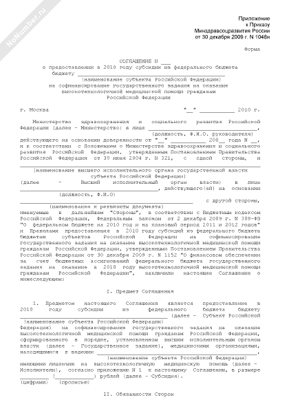 - 427Соглашение о предоставлении в 2010 году субсидии из федерального бюджета бюджету субъекта Российской Федерации на софинансирование государственного задания на оказание высокотехнологичной медицинской помощи гражданам Российской Федерации