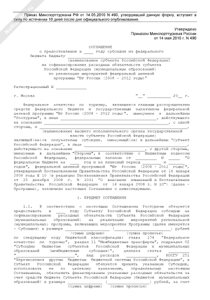 - 440Соглашение о предоставлении субсидии из федерального бюджета бюджету субъекта Российской Федерации на софинансирование расходных обязательств субъекта Российской Федерации (муниципальных образований) по реализации мероприятий федеральной целевой программы «Юг России (2008–2012 годы)»