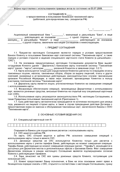- 422Соглашение о предоставлении в пользование банковской таможенной карты (дебетовой; для юридических лиц — резидентов РФ)