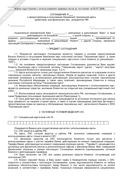 - 421Соглашение о предоставлении в пользование банковской таможенной карты (дебетовой; для физических лиц — резидентов РФ))