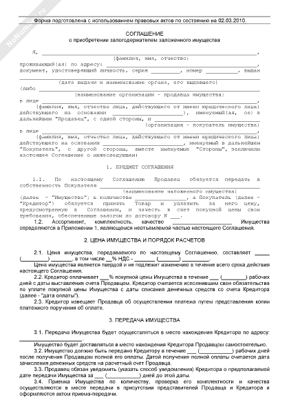 - 436Соглашение о приобретении залогодержателем заложенного имущества при объявлении торгов по продаже предмета залога несостоявшимися