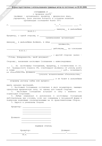 - 435Соглашение о прощении долга (общая форма)