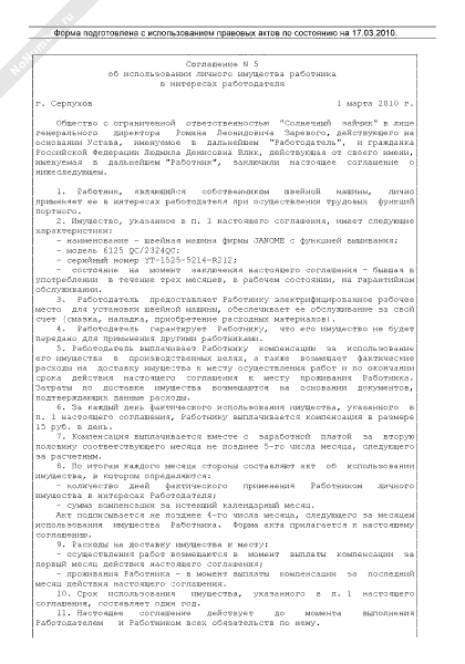 - 520Соглашение об использовании личного имущества работника в интересах работодателя