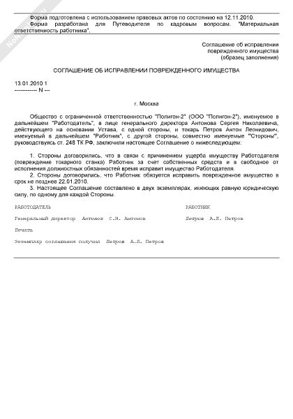 - 519Соглашение об исправлении поврежденного имущества