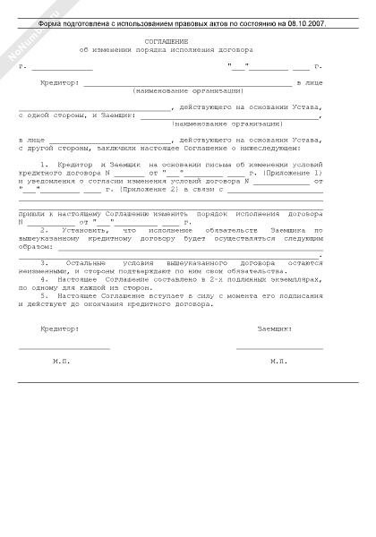 - 502Соглашение об изменении порядка исполнения кредитного договора (приложение к кредитному договору)
