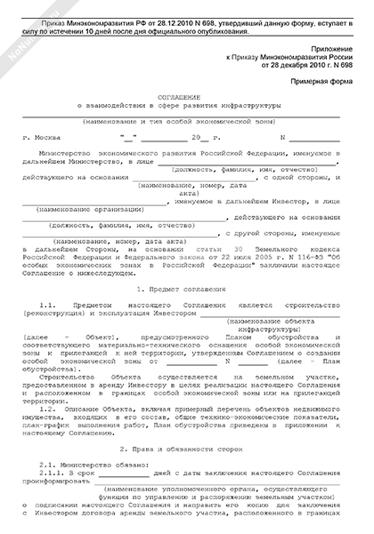 - 721Соглашение о взаимодействии в сфере развития инфраструктуры особой экономической зоны