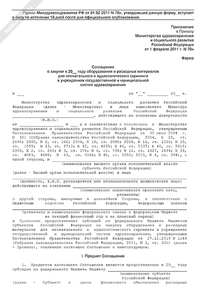 - 725Соглашение о закупке оборудования и расходных материалов для неонатального и аудиологического скрининга в учреждениях государственной и муниципальной систем здравоохранения