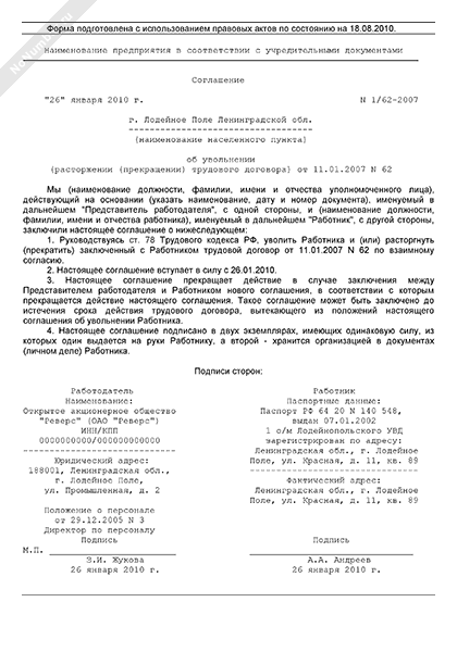 - 729Соглашение о прекращении трудового договора по соглашению сторон