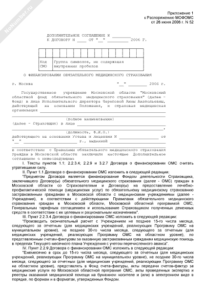 - Источник– Распоряжение МОФОМС от 26.06.2006 № 52